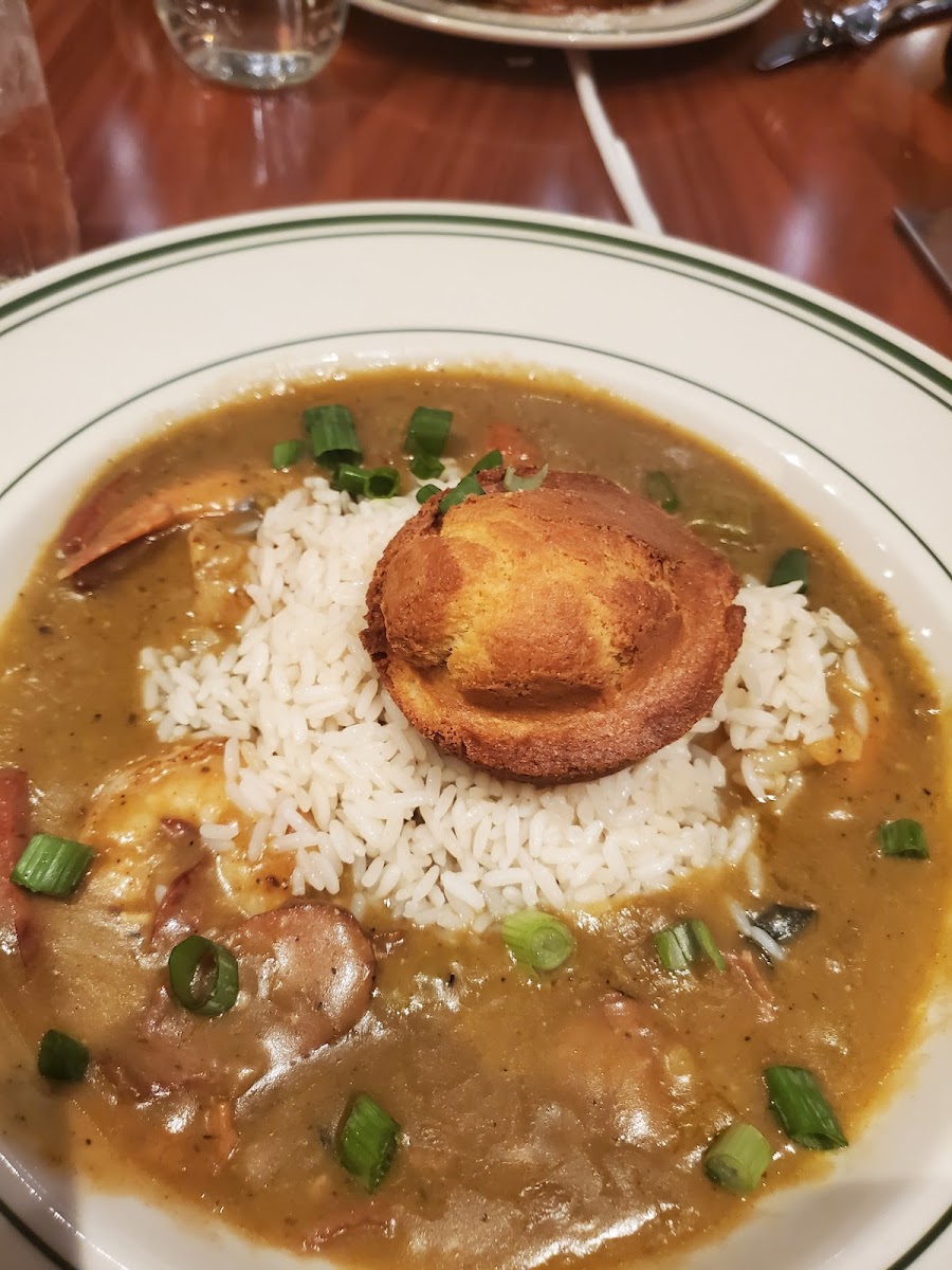 The restaurant was nice and felt warm due to the ambiance and the great customer service from the staff. We were seated immediately on the patio, under a heater; because it was chilly. We were able to people watch on a beautiful Sunday morning. The music was great! And the food was even better. We had the gumbo that came with some really good cornbread that tasted like cake. The serving was so large I had to pack the remainder to go. The chicken and waffles were very good. The waffle was soft and not over cooked. The Mac and cheese was delicious also. Parking was right across the street. Great experience overall.