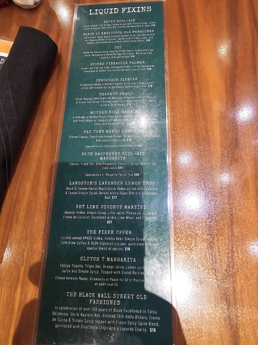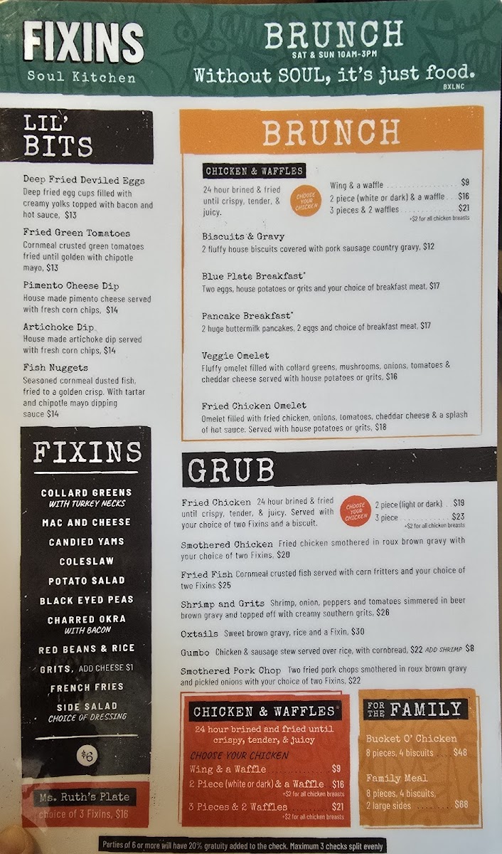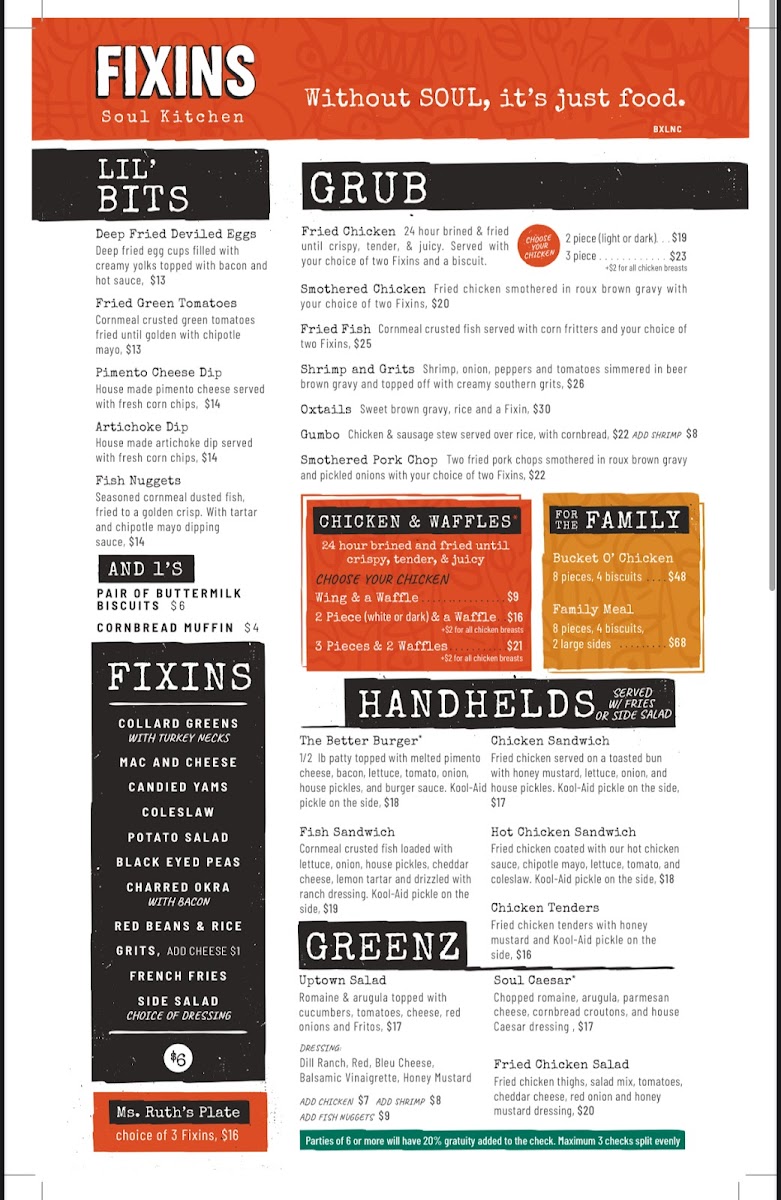 Fixins Soul Kitchen Menu